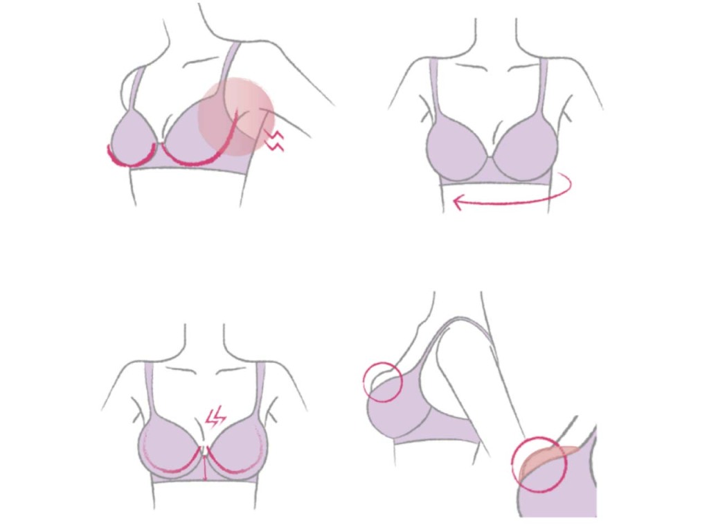 - ブラの前中心がずれたり、ブラが回ってしまったりする
